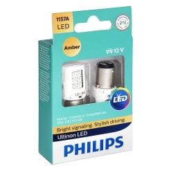 Ultinon LED Bulbs (1157) (1157ALED) by Philips®. 1 Pair, amber color bulbs, 2W, 12V. Replace your standard car bulbs with long lasting Philips Ultinon LED bulbs. They are a direct replacement for incandescent bulbs and are resistant to extreme heat and high vibrations. One look at their top-of-the-line design tells you these bulbs are like nothing you have seen before – Ultinon LED bulbs have been engineered to provide outstanding performance and ensure great longevity. Plus, they are backed by a 12-year limited warranty.