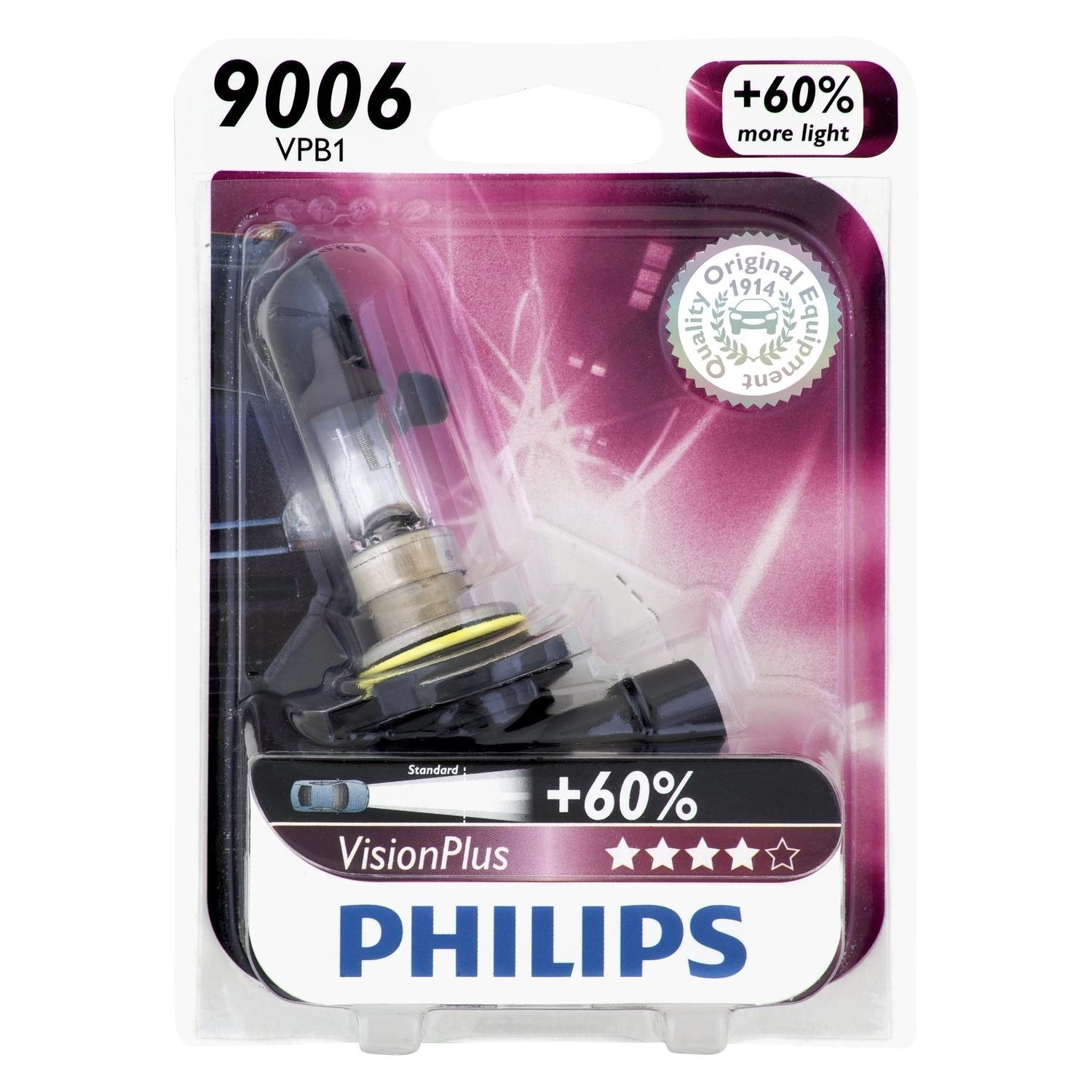 VisionPlus Replacement Bulb (9006 / HB4) (9006VPB1) by Philips®, 1 Bulb, 3300K. With top-grade Philips VisionPlus bulbs you’ll feel and drive safely. The bulbs are designed using breakthrough innovations to ensure outstanding operation and seamless service for decades to come. Providing 60% more light they will allow you to see farther and better, and therefore to react quicker and prevent accidents.
